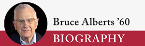 Bruce Alberts ’60, Chancellor’s Leadership Chair in Biochemistry and Biophysics for Science and Education, Emeritus, at the University of California, San Francisco, and former president of the U.S. National Academy of Sciences. Alberts is also the lead author of Molecular Biology of the Cell, widely considered the “bible” of molecular biology and still used by generations of students studying the field today.