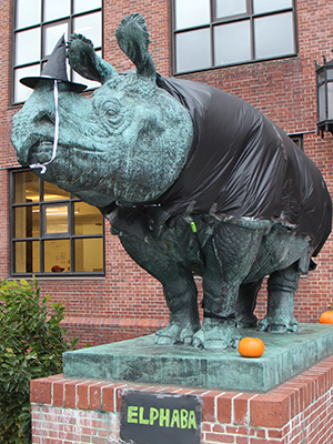Be sure to stop by the BioLabs building to see the rhinos in their Halloween best.